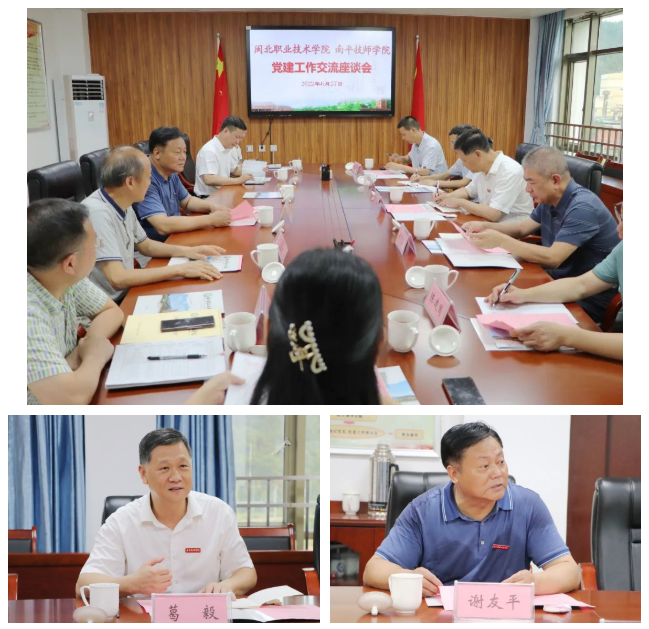 座谈会上,谢友平介绍了闽北职业技术学院的发展历史、办学规模、办学理念、办学定位、专业设置、师资队伍建设等基本情况,还介绍了服务闽北产业及“以赛促学,以赛促教,以赛促改,以赛促建”工作方法。同时,详细讲解了闽职院对接南平“3+4+5”产业集群和“五个一”特色产业,建立乡村振兴学院、产业学院,开展“四联四促”等深化党建业务融合的主要做法。