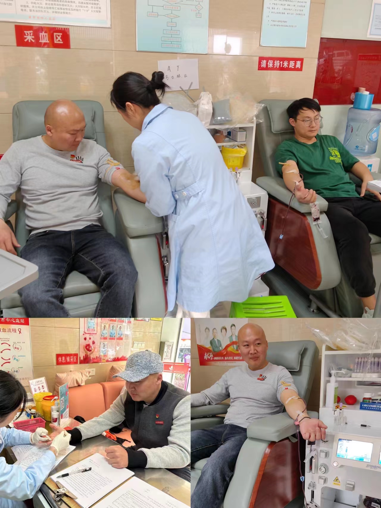 在南平市中心血站献血点,第三党支部和教工第三团支部的志愿者们精神饱满,在医务人员指导下,依次完成信息登记、血压检测、血液化验等工作,献血过程秩序井然。缪伟杰、杨俊玮、耿杰、沈志浩、张旭、林涛等志愿者们率先垂范,带头挽袖献血,共同为生命护航,献血总量为1900毫升。随着一个个储血袋不断装满,汩汩热血聚成大爱,展现了志愿者们奉献社会、心系群众、积极参加社会公益事业的良好形象。