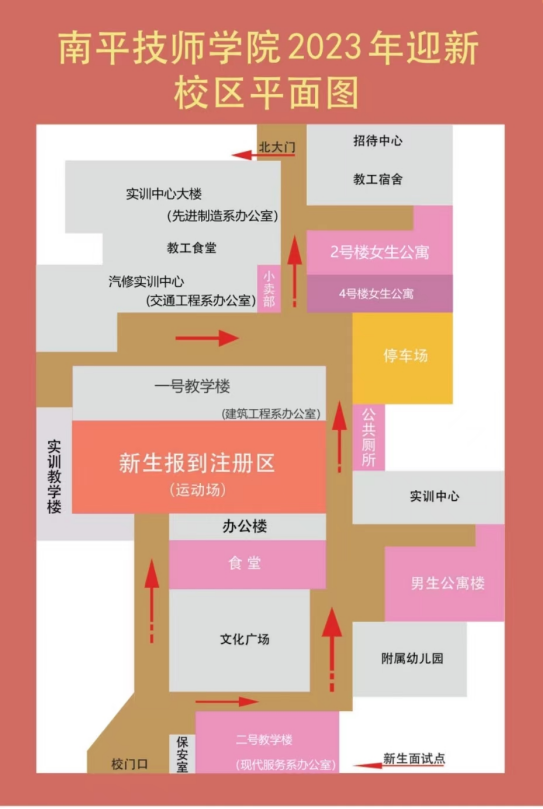 2. 自驾车:导航至“福建省南平技师学院”, 车辆入校须按规定线路行驶、停放。